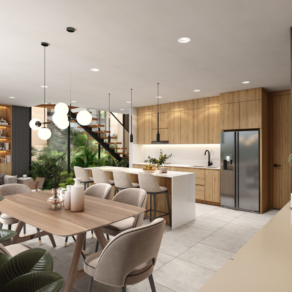 14 unidades de dos niveles con 169,23 m² construidos, área sobre la cual realizas tu inversión. Cada unidad incluye, sin costo adicional, una zona verde privada de uso exclusivo entre 400 m² y 1.000 m², diseñada para disfrutar la naturaleza y personalizar tu estilo de vida.